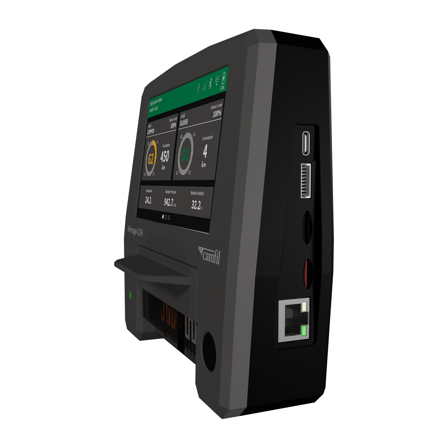 El monitor de calidad del aire AirImage COR de Camfil es un dispositivo avanzado diseñado para medir y evaluar los niveles de corrosividad en diversos entornos. Su funcionamiento se basa en el estándar de la Sociedad Internacional de Automatización (ISA), lo que garantiza mediciones precisas y confiables.