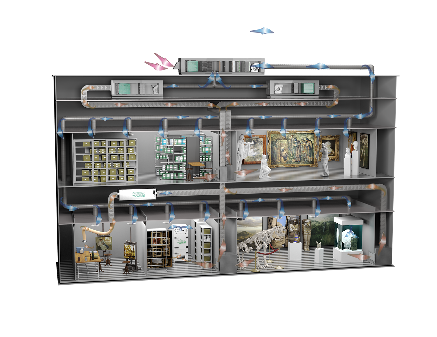 El CamCarb VC es la solución ideal para museos que requieren una filtración molecular efectiva en sus sistemas de recirculación sin realizar inversiones masivas en infraestructura