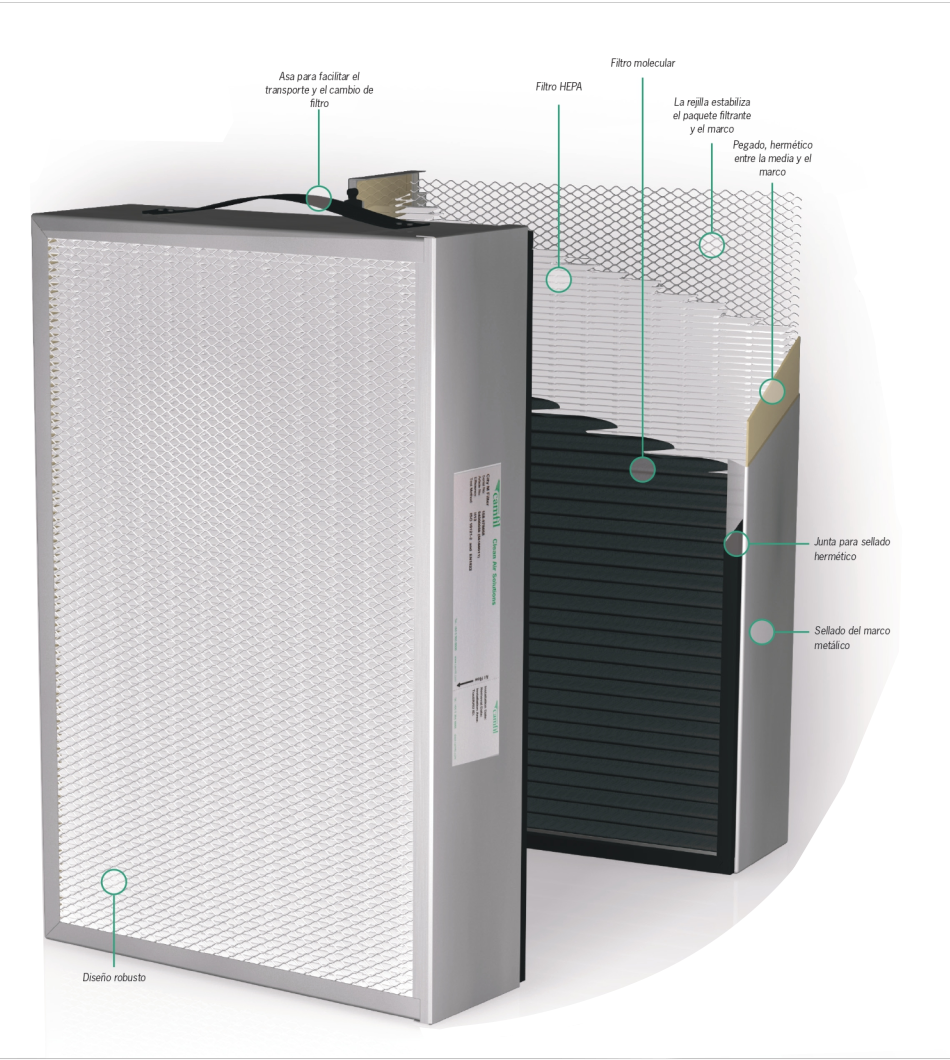 Utilizan filtros HEPA impregnados con carbón activado para brindar una solución de alta eficiencia en la captación de partículas y retener olores.